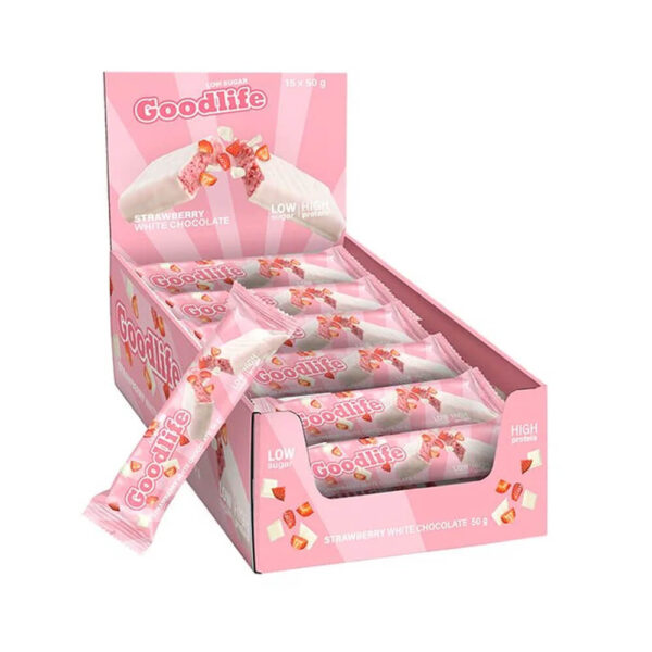 15 x Goodlife Proteinbar LOW SUGAR, 50 g (Strawberry White Chocolate) hittar du i Bars, Protein.