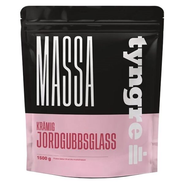 Massa Krämig Jordgubbsglass från Tyngre är envälsmakande gainer, perfekt för dig som vill lägga på dig muskelmassa.Tyngre Massa innehåller 50 % kolhydrater, 25 % vassleprotein och 16 % fett. Fördelar med Tyngre Massa Krämig Jordgubbsglass Energigivande och näringsrikt mellanmål Återhämtning med kolhydrater och protein Vill lägga på dig maximalt med muskelmassa Massa Krämig Jordgubbsglass är en högkvalitativ gainer och fantastisk återhämtningsprodukt för dig som tränar mycket. Om du tränar högintensivt och samtidigt vill öka i muskelmassa är Tyngre Massa produkten du söker. Kombinationen av noga utvalda kolhydrater, protein och mct-fett maximerar återhämtningen efter ett hårt träningspass och gör dig snabbt redo för nästa! Tyngre Massa innehåller 50 % kolhydrater, 25 % vassleprotein och 16 % fett (inklusive mct, medellånga fettsyror från kokosnöt). Kolhydrater bidrar till en förbättrad återhämtning efter träning och vassleproteinet tas snabbt upp av kroppen. Produkten är optimal efter träning, men fungerar lika bra som ett näringsrikt mellanmål. Tyngre Massa Krämig Jordgubbsglass är sagolikt välsmakande med glassinspirerad jordgubbssmak, och är lättblandad i både vatten och mjölk.
