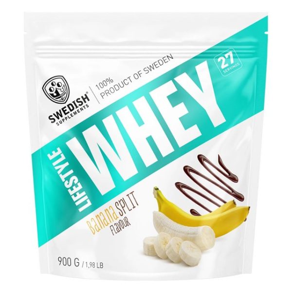 Swedish Supplements Lifestyle Whey Banana Split 900g hittar du i Protein och är taggad med Vassleprotein.