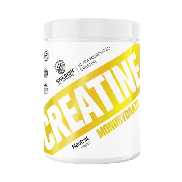 Creatine Monohydrate är ett kosttillskott från Swedish Supplements som innehåller 100 % rent kreatinmonohydrat. Kreatin ökar den fysiska kapaciteten. Kreatin är ett av världens mest uppskattade och undersökta kosttillskott. Vid en dos på 3 g dagligen så ökar kreatin den fysiska kapaciteten. Creatine Monohydrate från Swedish Supplements innehåller rent kreatinmonohydrat och är fritt från färg, arom och sötning. Det kan därför utan problem blandas i valfri dryck. Fördelar medSwedish Supplements Creatine Monohydrate Skonsam mot magen 100 % rent kreatinmonohydrat Mikroniserat Ökar den fysiska kapaciteten Kreatin passar för alla idrotter med explosiva moment, fotboll, hockey, sprint, bodybuilding, styrkelyft mfl Kreatin hör till ett av de mest studera kosttillskotten i världen. Kreatin är en relativt enkel molekyl som består av tre aminosyror. Kroppen producerar den själv och den återfinns i animalier och då framförallt kött. Kroppen kan lagra kreatin men för att detta ska ske så är mängderna i mat för låg. Creatine Monohydrate innehåller 100 % rent kreatinmonohydrat. Kreatinet är även mikroniserat för att säkerställa hög kvalitet. Då det inte innehåller några tillsatser så går det utmärkt att blanda detta kreatin med alla typer av vätska. Med Creatine Monohydrate från Swedish Supplements så får du hela 5000 mg kreatinmonohydrat per servering. Kreatin är väl bevisat att öka den fysiska prestationen vid upprepade kraftansträngningar så som styrketräning. Denna effekt nås vid 3g kreatin dagligen.