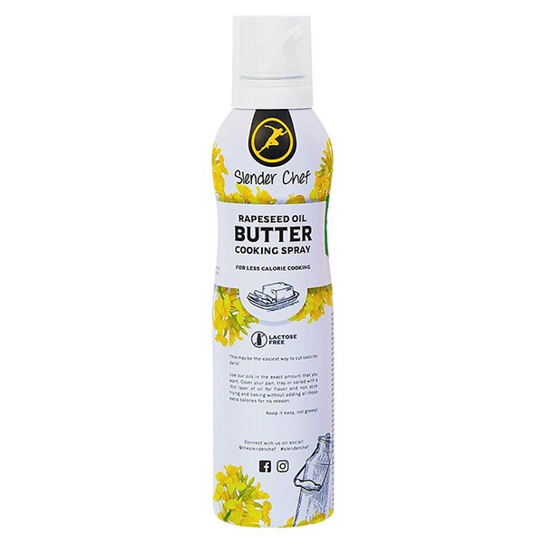 Slender Chef Cooking Spray Butter Slender Chef Cooking Spray Butter är en ny riktigt bra cooking spray av rapsolja med smörsmak. Slender Chef Cooking Spray är ett smart val för aktiva och hälsomedvetna individer som tänker på vad de stoppar i sig. Den praktiska pumpflaskan ger dig ett kontrollerat och kladdfritt resultat varje gång! Slender Chef producerar genomgående bra produkter och dessa oljor håller en riktigt hög kvalitet. Produkten är naturlig och utan en massa konstiga tillsatser, samt att de ej drivs av gas utan bara tryckluft - både miljöbra och konsumentbra! Användningsförslag: Spraya önskad mängd till din matlagning eller bakning.