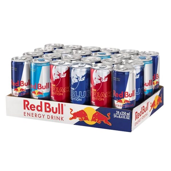 Mixa dina flak med Red Bull RedBull Energy Drink är en funktionsdryck som ger dig vingar när du behöver dem. RedBull Energy Drink är uppskattad över hela världen av toppidrottare, studenter, under krävande arbetsdagar och vid långa bilkörningar. Fördelar med Red Bull • Fri från sötningsmedel • 80mg koffein per burk • Innehåller kolsyra, serveras väl kyld • Livar upp kropp och sinne! Red Bull ger dig Viiingar Energidryck som livar upp både kropp och sinne. 1987 lanserade Red Bull inte bara en ny produkt, utan skapade också en helt ny produktkategori energidryck. Sedan dess har Red Bull gett vingar åt människor och idéer där man har satt nya milstolpar inom både sport och kultur. Red Bull innehåller även en noggrant utvald blandning av vitaminer som är viktiga för att upprätthålla normala kroppsfunktioner samt aminosyran taurin. Red Bulls produktionsanläggningar ligger i de österrikiska och schweiziska alperna, där sötvatten av högsta kvalitet hämtas från källor i närheten för att användas i denna klassiska dryck. Red Bulls energidrycker är uppskattade över hela världen av toppidrottare och studenter, under krävande arbetsdagar och vid långa bilkörningar. En viktig anledning till detta är innehållet av koffein. Koffein har bland annat förmågan att ge en ökad känsla av vakenhet och bidrar till att stimulera koncentrationsförmågan och varje burk Red Bull ger 80 mg koffein.