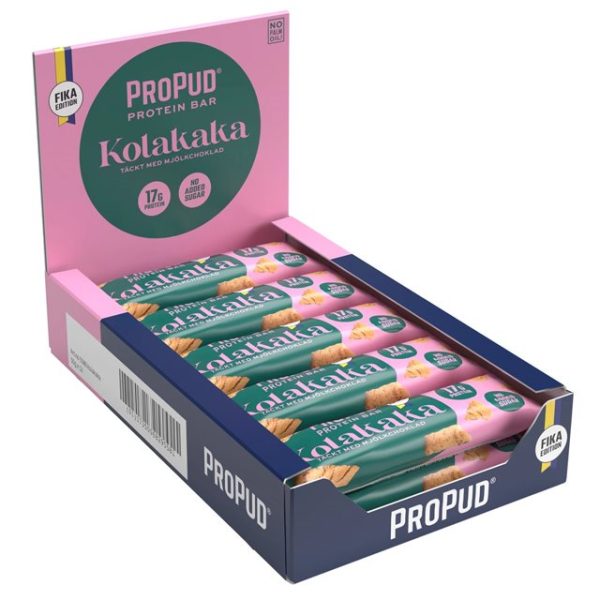 NJIE ProPud Protein Bars ger din kropp vad den behöver. Ett smidigt och gott mellanmål med 17 gram protein, helt utan tillsatt socker. Fördelar med Njie ProPud Proteinbar 17g protein Helt utan tillsatt socker Perfekt mellanmål Riktigt god smak Propud bar Kolakakaär inspirerad av en älskad svensk klassisk kaka. Fylld med ett mjukt och kolaliknande proteinlager, toppat med en lätt kräm och med krispiga kakbitar, inslagna i en silkeslen chokladöverdrag. Passar perfekt innan eller efter träning och när du behöver fylla på med protein. Utan tillsatt socker och loaded with pleasure!