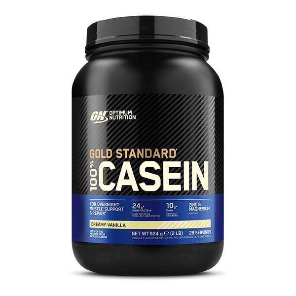 Hög dos protein av bästa kvalitet 100% Casein Gold Standard är ett av världens mest populära kaseinprotein eftersom det har en extremt låg fetthalt och en hög dos protein per portion. Proteinet bryts långsamt ner i kroppen, vilket gör det fördelaktigt att dricka innan läggdags. Fördelar med 100% Casein Gold Standard Låg fetthalt Micellärt protein Hög renlighet 73-75% Långsam nedbrytning Drick innan läggdags Laktosvänligt proteinpulver 100% Casein Gold Standard består av micellärt protein, vilket är den delen av protein som är mest förekommande i vanlig mjölk. Micellärt protein fokuserar främst på ökad muskelmassa och återhämtning. Proteinet innehåller även en enzym som snabbt bryter ner laktosen, vilket gör produkten lämplig även för laktosintolleranta.