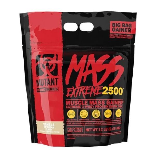 Mutant är ett välkänt företag vars kosttillskott finns att hitta i flera länder. Med Mutant Mass Extreme har Mutant tagit det populära kosttillskottet Mutant Mass till nästa nivå. Detta är en gainer som hjälper dig att både öka i vikt och återhämta dig efter träningen snabbt. Fördelar med Mutant Mass Extreme Över 1000 kalorier per portion Öka din vikt snabbt Bättre återhämtning efter träning Låg halt av mättat fett Utmärkt att använda efter träning eller mellan måltider Öka din massa Har du problem med att öka i vikt i samband med din hårda träning kan du använda dig av Mutant Mass Exreme för att ändra på detta. Produktenär speciellt utvecklat för personer med svårigheter att öka i vikt. En portion består av cirka 1100 kalorier, varav 30 g protein från en 3-whey proteinblandning. Mutant har utvecklat flera högkvalitativa kosttillskott. Med Mutant Mass Extreme visar de återigen varför de är så populära och uppskattade av atleter runt om i världen. Denna gainer passar bra för dig som vill öka i vikt. Den innehåller en kombination av snabba kolhydrater, proteiner och lite fett. Mutant Mass Extreme består till stor del av kolhydrater. Kolhydrater bidrar till återställande av normal muskelfunktion (kontraktion) efter högintensiv och/eller långvarig fysisk träning som leder till muskeltrötthet och tömda glykogenlager i skelettmuskulaturen. Produkteninnehåller även protein, vilket bidrar bland annat till att öka och bibehålla muskelmassa, samt kalcium, vilket bland annat bidrar till normal muskelfunktion, normal energiomsättning och starkare skelett. Denna gainer har endast 2g mättat fett per portion. Minskat intag av mättat fett bidrar till att bibehålla normala kolesterolnivåer i blodet. Mutant Mass Extreme har dessutom mindre socker jämfört med populära Mutant Mass. Drick Mutant Mass Extreme som ett mellanmål eller efter din träning för att du snabbare ska kunna öka i vikt. Notera att denna gainer ska fungera som ett komplement till din vanliga kost och fungerar inte som en ersättning.