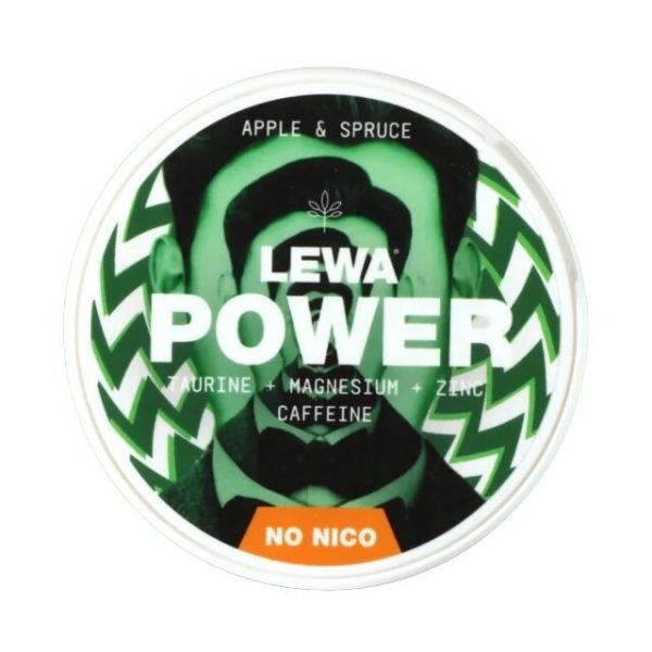 LEWAApple Spruce Nikotinfritt snus är helvita, mjuka portioner fullpackade med koffein smak av äpple och granbarr.Koffeinet i portionerna ger extra intensitet och här finns också vitaminerna B12, D3 och mineralen zink. Fördelar medLEWA Power Apple Spruce Nikotinfritt snus 50mg koffein per portion En dosa innehåller ca 18 portioner Hel fri från tobak nikotin – bara good energy LEWA Nikotinfritt Tobaksfritt Snus LEWA är en helt nikotinfri och tobaksfri produkt. Du placerar den under läppen och den passar dig som vill en prilla utan tobak eller nikotin. Med 50 mg koffein per portion kan den även vara ett lämpligt alternativ till kaffe.