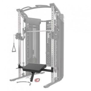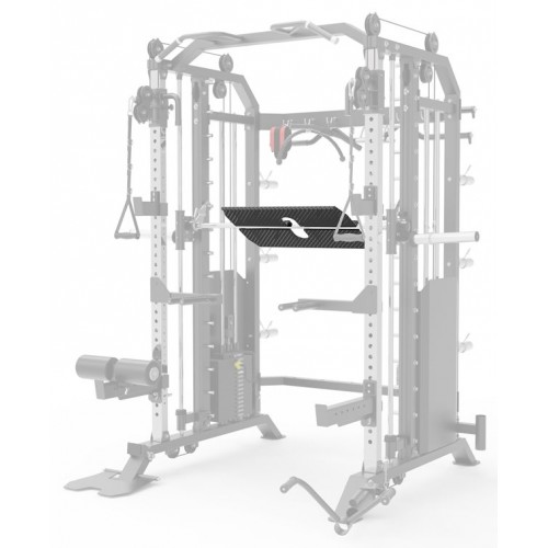 Genom att montera fotplattan på smithstången så får man en benpress som används i ryggliggande.