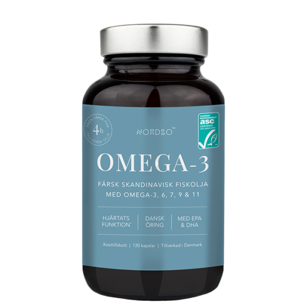 Nordbo Omega-3 innehåller färsk och obehandlad fiskolja från dansk öring. Innehåller Omega 3, 6, 7, 9 och 11 med EPA och DHA.