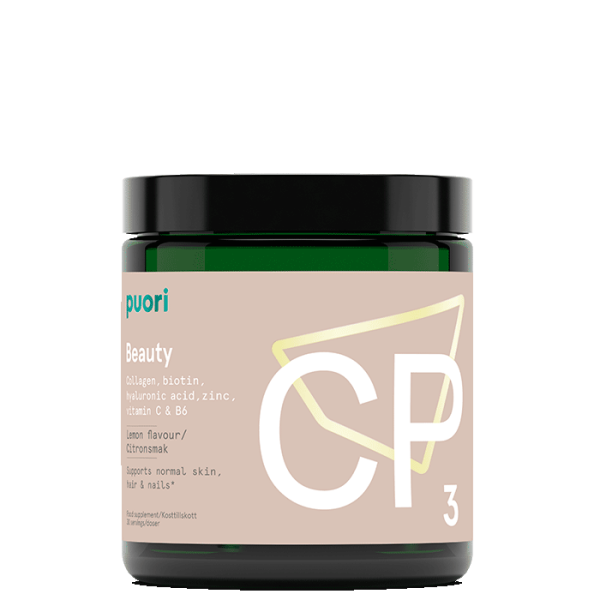 CP3 Neutral Collagen+ Lemon är ett kosttillskott från Puori med kollagen, vitamin C, B6, zink, biotin och hyaluronsyra. Utvecklad för att bidra till normalt hår, hud och naglar.
