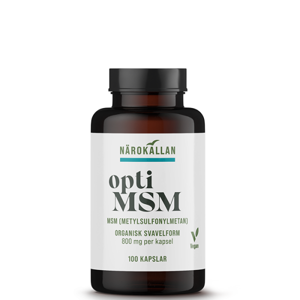OptiMSM 100 kapslar är ett kosttillskott från Närokällan med 800 mg, högkvalitativ OptiMSM® per kapsel. MSM är ett svavelhaltigt ämne som finns i kroppen.