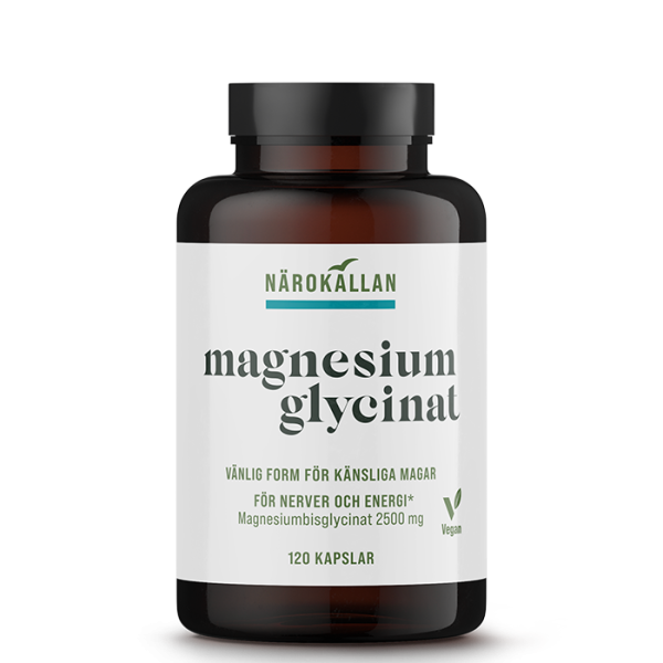 Magnesiumglycinat är ett kosttillskott från Närokällan med magnesiumglycinat i form av kapslar. En helt vegansk produkt som ger 276 mg rent magnesium per daglig dos.