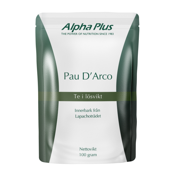 Pau D’arco te från Alpha Plus är ett torkat barkté i lösvikt . Pau D’Arco hämtas från innerbarken på det stora Lapachoträdet i Sydamerika.