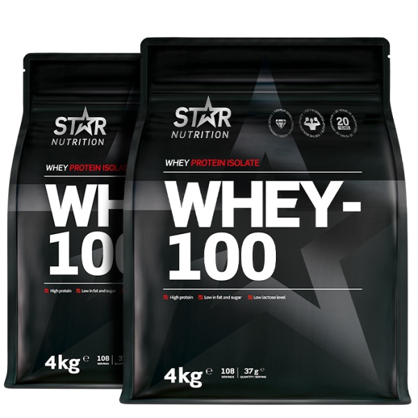 2 x Whey-100, 4 kg: Ett kompromisslöst kvalitetsprotein tillverkat för dig som kräver det bästa! För maximal muskeluppbyggnad och fettförbränning!