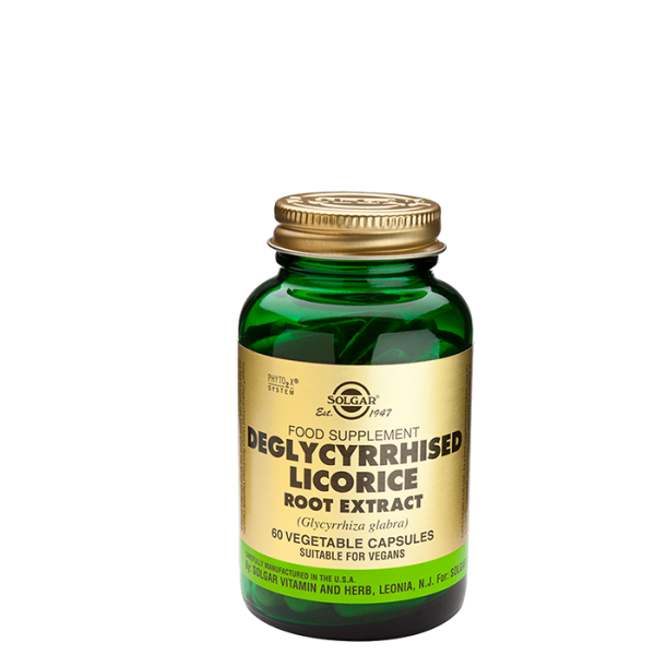 Deglycyrrhised Licorice root extract från Solgar är ett kosttillskott med lakritsrot utan glycyrrhizin. Innehåller både extrakt från lakritsrot och vanligt lakritsrotspulver.