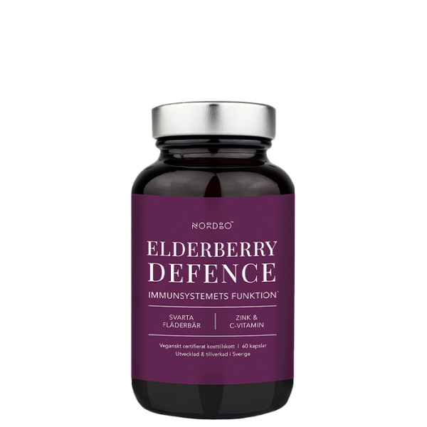 Elderberry Försvar är ett kosttillskott från Nordbo med vitamin C och zink för ett normalt immunförsvar tillsammans med fläderextrakt. En förpackning räcker i upp till 60 dagar.