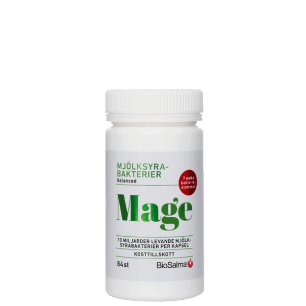 Biosalma Mjölksyrabakterier är ett kosttillskott med 10 miljarder mjölksyrabakterier i varje kapsel från 7 olika stammar.
