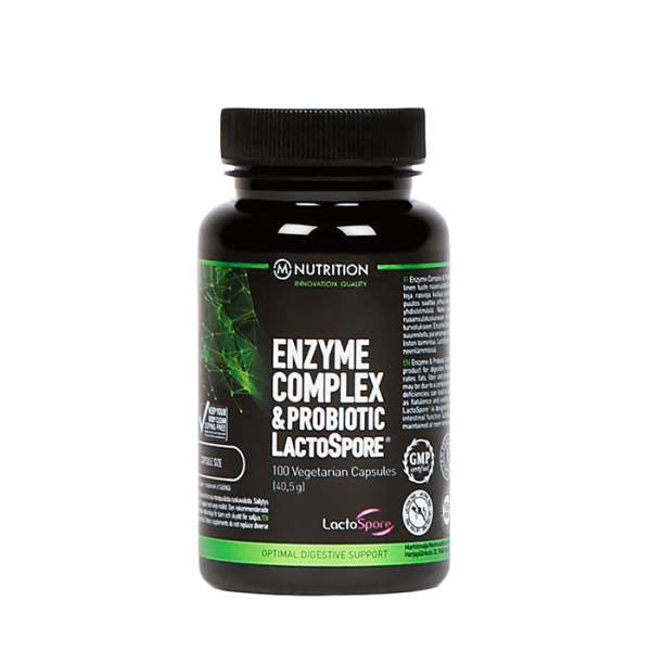 Enzyme Complex and Probiotic LactoSpore är ett kosttillskott från M-Nutrition som kombinerar enzymkomplex med mjölksyrabakterier i form av Lactospore®. Används i samband med måltid.