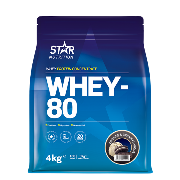 Star Nutrition Whey-80® - Komplett proteintillskott för dig som idrottar och vill ha bästa möjliga resultat av din träning. Nu med förbättrad återförslutning av påsen.