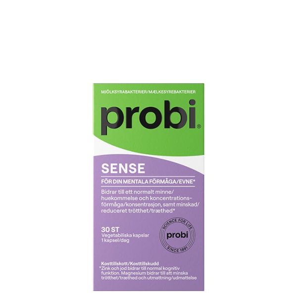 Probi Sense 30 kapslar, är ett kosttillskott från Probi, utvecklat för immunförsvar, kognitiv funktion samt för att minska trötthet och utmattning.