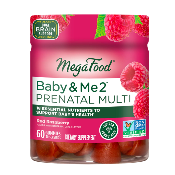 Baby amp; Me 2 Prenatal Multi Gummies från MegaFood är en multivitaminmineral i goda gummies med flera viktiga vitaminer och mineraler samt ekologiskt hallon för den gravida kvinnan. Den innehåller näringsämnen som bidrar till vävnadstillväxt hos gravida.