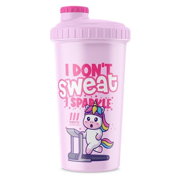 I don´t sweat I sparkle, Pink Unicorn Shaker Snygg och praktisk shaker från North Nutrition. Nu kan du blanda dina proteindrinkar och Pre-Workouts med cool stil, med denna mycket prisvärda shaker! Pipen är rund, drickvänlig och har ett praktiskt skruvlock. Shaker med måttmarkering Shakern rymmer 700 ml och har praktisk måttmarkering, så att du kan blanda dina kosttillskott tillförlitligt. Shakern är perfekt att blanda allt från gainer och måltidsersättning till aminosyror och pre-workouts med, eller om du bara vill använda den som vattenflaska under din träning. Shakern tål maskindisk utan att tappa färg. Snygg design! Rymmer 700 ml vätska! Praktisk skruvkork och lock som håller tätt Passar utmärkt till både träningspasset och jobbet BPA Free