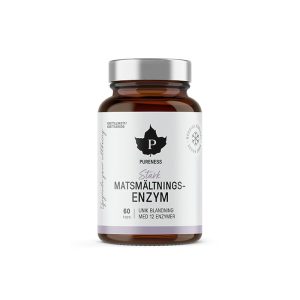 Pureness Stark matsmältningsenzym Matsmältningsenzymer spelar en avgörande roll i kroppens förmåga att omvandla mat till näring. De hjälper till att bryta ner kolhydrater, protein och fett så att kroppen lättare kan ta upp viktiga näringsämnen. Pureness enzympreparat är utvecklat med fokus på hög kvalitet och innehåller 12 noggrant utvalda enzymstammar från en producent i USA. Den avancerade teknologin bakom formulan gör att enzymerna behåller sin funktion både i sur och alkalisk miljö, vilket säkerställer optimal effekt genom hela matsmältningsprocessen. För ännu starkare stöd kan produkten kombineras med Betain HCl + Pepsin. Vad är enzymer? Enzymer är mikroskopiska proteinmolekyler som kroppen använder för att bryta ner maten vi äter. De finns naturligt i våra celler och varje cell kan innehålla upp till 1000 olika enzymer med unika funktioner. Utan enzymer kan kroppen inte effektivt ta upp näring från mat, och de behövs även för att bearbeta vitaminer, mineraler och hormoner. Matsmältningsenzymer och magbalans Kroppens naturliga produktion av matsmältningsenzymer minskar med åldern, vilket kan bidra till uppsvälldhet, gaser, magbesvär och trötthet. Ett enzymtillskott kan därför vara ett värdefullt stöd – både för äldre och för yngre personer som upplever känslig mage, exempelvis vid stora måltider eller fet mat. Fördelar medPureness Stark matsmältningsenzym: ✔12 enzymstammar för bred matsmältningssupport ✔ Aktiv i både sur och alkalisk miljö ✔ Bidrar till bättre näringsupptag ✔ Passar vid känslig mage eller tung matsmältning ✔ Kan kombineras med Betain HCl + Pepsin för extra effekt
