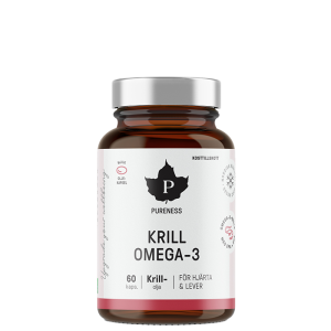 Pureness Krill Omega-3 Pureness Krill Omega-3 är ett premium kosttillskott med högkvalitativ krillolja i fosfolipidform, utvecklat för optimal upptagning och effektivt näringsstöd. Omega-3-fettsyrorna EPA och DHA bidrar till hjärtats normala funktion, och den gynnsamma effekten uppnås vid ett dagligt intag av 250 mg EPA och DHA. Överlägsen absorption med fosfolipidbunden omega-3 Till skillnad från traditionell fiskolja är omega-3 i krillolja bundet till fosfolipider, vilket kan förbättra kroppens upptagningsförmåga och biotillgänglighet. Det gör Pureness Krill Omega-3 till ett effektivt alternativ för dig som vill maximera nyttan av dina essentiella fettsyror. Berikad med kolin och astaxantin Formulan innehåller naturligt förekommande näringsämnen som förstärker produktens hälsofördelar: ✔Kolin – en vitaminliknande förening som bidrar till normal leverfunktion och fettmetabolism ✔Astaxantin – en kraftfull karotenoidantioxidant som ger kapslarna deras naturligt röda färg Hållbar och ren råvara från Antarktis Krilloljan utvinns från några av världens renaste havsvatten kring Antarktis. Den skonsamma Eco-Harvesting-metoden minimerar bifångst och skyddar marina ekosystem, vilket gör produkten till ett hållbart val. Lätt att ta – utan eftersmak De mjuka kapslarna är lätta att svälja och orsakar varken fiskig eftersmak eller halsbränna, vilket gör tillskottet behagligt att använda dagligen. Fördelar med Pureness Krill Omega-3 ✔Omega-3 (EPA DHA) för hjärtats normala funktion ✔ Fosfolipidform för bättre upptag ✔ Med kolin för lever och fettmetabolism ✔ Innehåller naturligt astaxantin ✔ Hållbart fångad krillolja från Antarktis ✔ Ingen fiskig eftersmak
