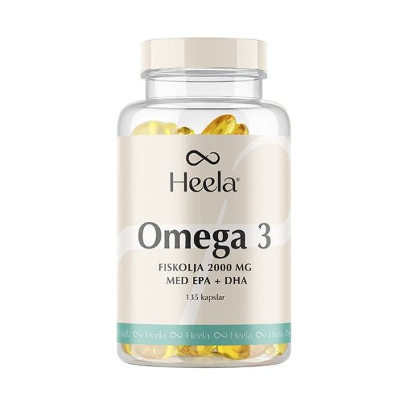 Heela Omega 3 är ett kosttillskott som ger 2000 mg fiskolja per dagsdos. Produkten innehåller EPA och DHA samt vitamin E och levereras i en burk med 135 kapslar.