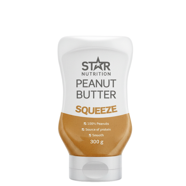 Med Peanut Butter Squeeze från Star Nutrition får du ett lent och krämigt jordnötssmör i en praktisk 300 g klämförpackning. Tillverkat av 100 % jordnötter, helt utan tillsatser.
