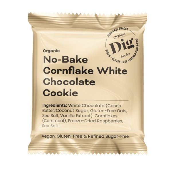 DIG No-Bake Cornflake White Chocolate Cookie 30g hittar du i Hälsokost - Livsmedel - Snack & Godis.