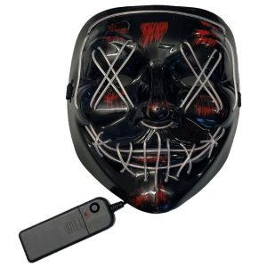Halloweenmask med kryssformade LED-ljus över ögonen som ger en mystisk och läskig look som är perfekt för att skapa en atmosfär av spänning och...